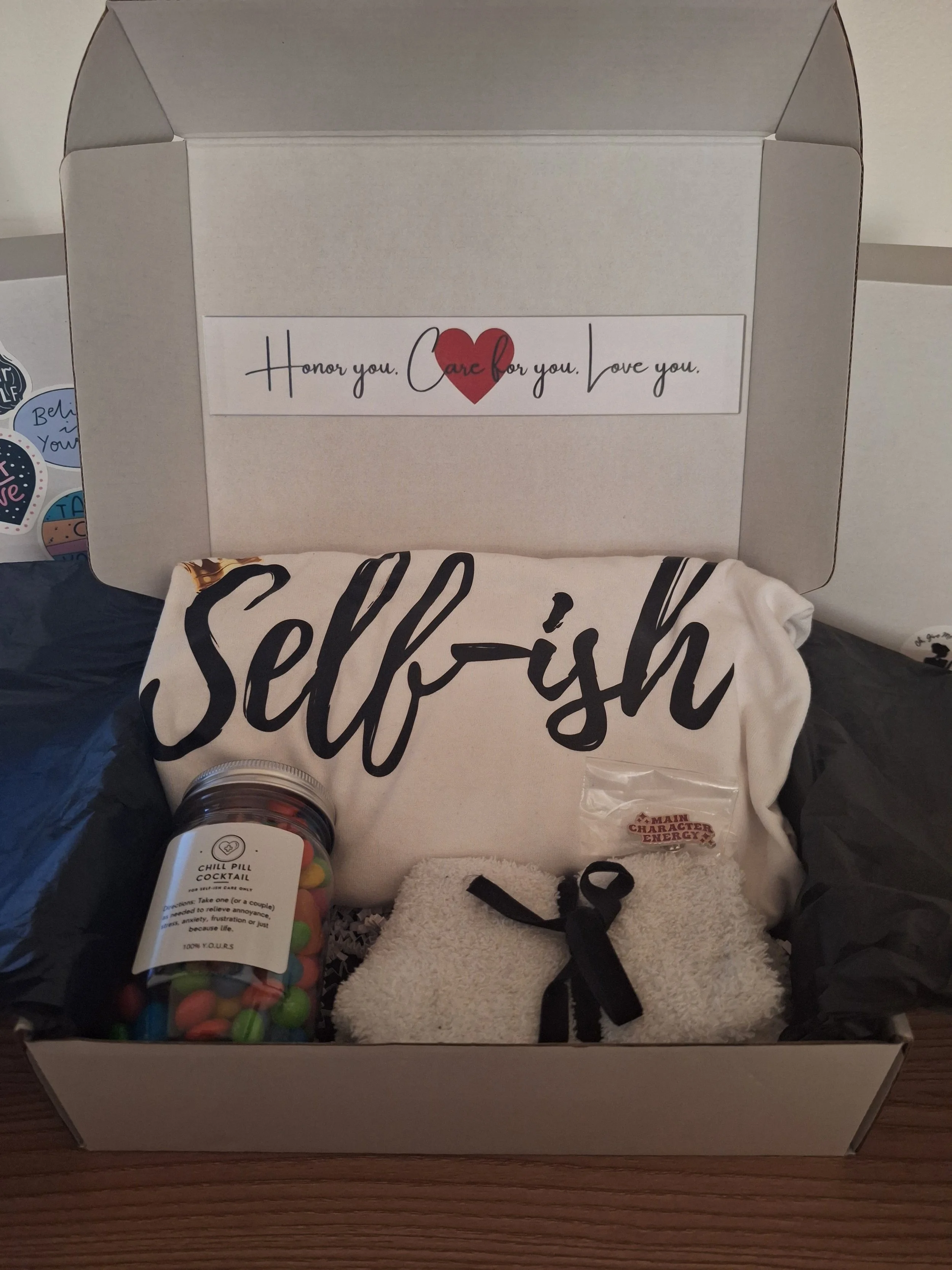 Our self-ish care mug kits are the talk of the gift town! (For yourself… or others too). Cute, compact and full of goodies! Including: ‘I❤️Me’ 6oz Mug, 2 stickers, 1 diamond pen, 1 heart caramel chocolate, 1 paper flower, and a free ‘I❤️ME’ pin!